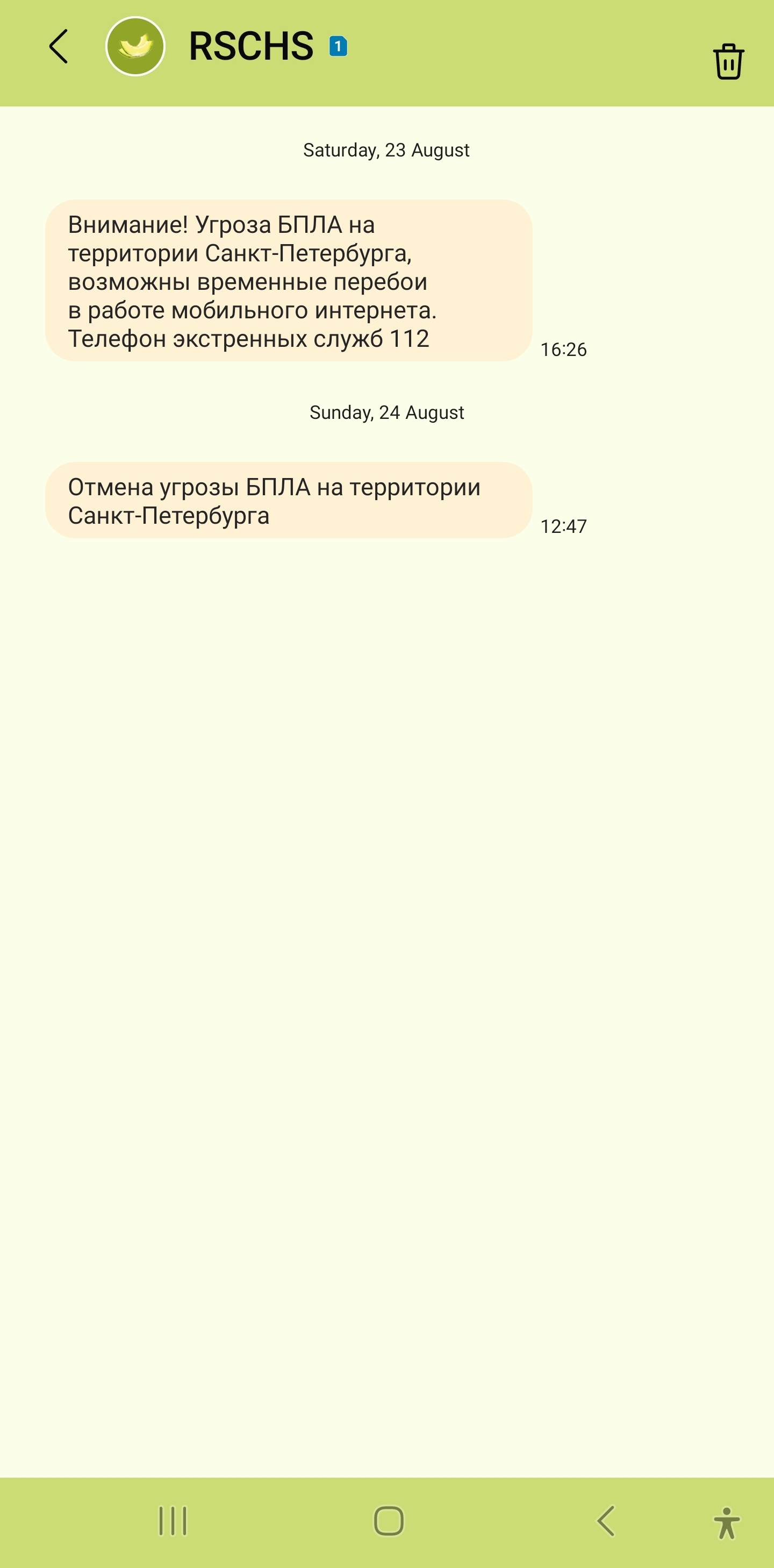 این پیامها به دلیل شرایط جنگی زمان سفر من بین کشور اوکراین و روسیه ارسال شده بود و باید به پناهگاه میرفتیم که اصلا متوجه موضوع نشده بودیم و سایر مردم سنت پترزبورگ هم به اون اهمیتی نداده بودند و حرکت و یا فراری رو نمیدیدم . بهرحال ...