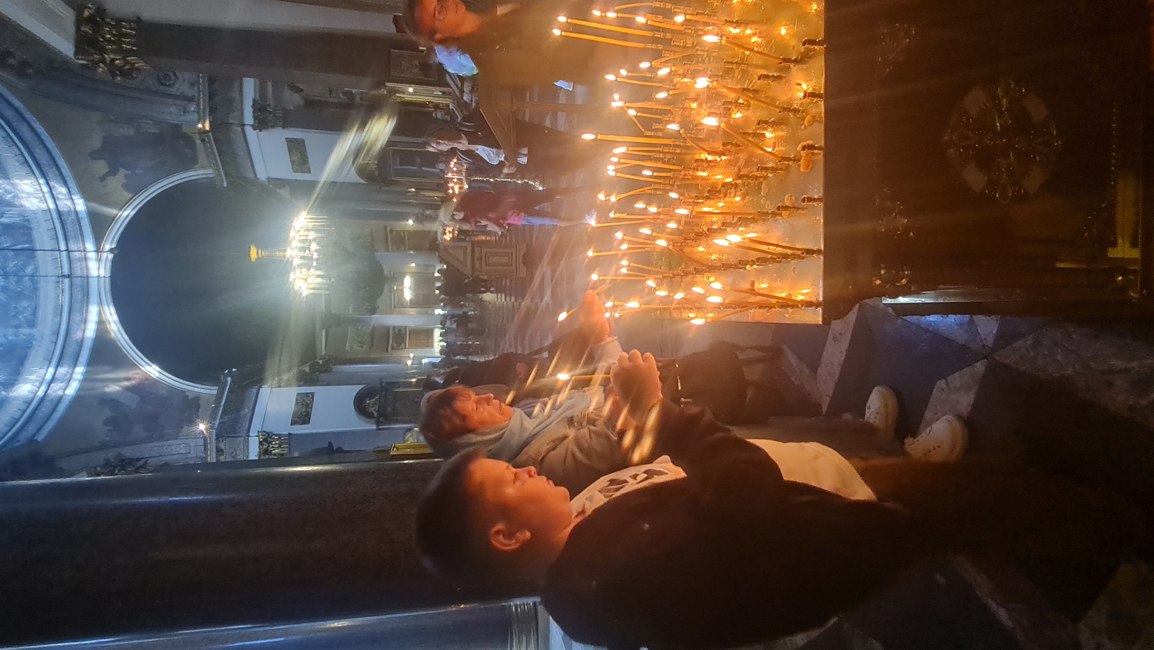 در این کلیسا , عبادت کنندگان از محلی درون کلیسا شمع خریداری میکردند و بعد از آتش زدن آن در بروی پایه ای اون رو کار میگذاشتند و دعا میخواندند.من بعد از تماشای اینکار متوجه شمعی شدم که بر روی زمین افتاده بود و هنوز سالم بود.اون رو برداشتم و آتش زدم و بر روی یکی از همین پایه ها قرار دادم.مردمی که به دور اون پایه جمع شده بودند با هیجان به من نگاه کردند و شروع به صلیب کشدن کردند.شاید فکر کردند یکی مسیحی شده و به آیین اونا رو اورده.منم با اشتیاق اونها همراه شدم و به تقلید از اونها صلیبی کشیدم و با چشمان بسته شروع به دعا کردم و البته زیر چشمی رفتار ها و ذوق اونها رو تماشا میکردم.