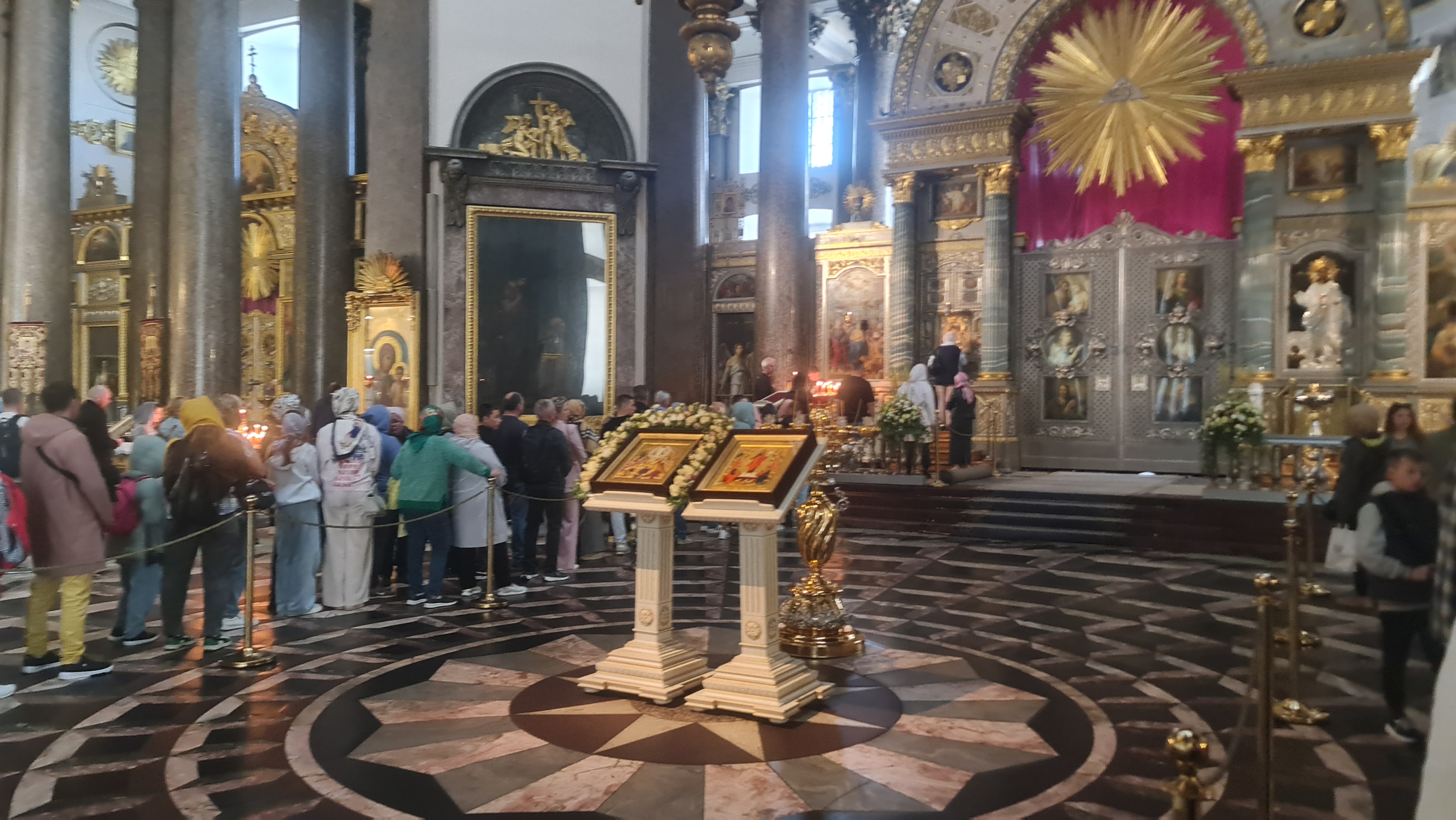 در بازدید از کلیسا های شهر سنت پترزبورگ از کلیسای کازان و همچنین سنت باسیل بازدید کردیم.این کلیسا ها مخصوص مسحیت ارتدوکس طراحی شده بودند و اغلب کسانی که از این کلیسا ها بازدید میکردند مانند من , عاشق مطالعه بر روی ادیان مختلف بودند.از جای جای این کلیسا حین برگزاری مراسم عبادت مسیحیان سعی کردم عکسبرداری و فیلمبرداری کنم.چیزی که خیلی به دنبالش بودم و موفق نشدم , مشاهده راهبه های کلیسا بود که متاسفانه جو حاکم طوری نبود که بتونم بیش از این کنجکاوی کنم و وارد اتاق هایی بشم که بطور مخفی در اون کلیسا بود و فقط مختص رفت و آمد کشیش و افراد روحانی اونجا بود.