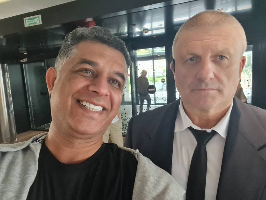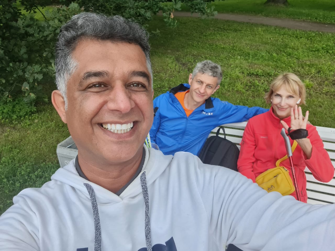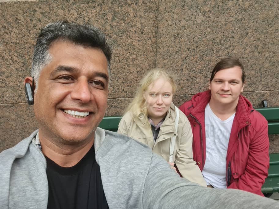 عکس یادگاری با دو ورزشکارپرانرژی روس - جزیره یلاگین - رود نوا - سنت پترزبورگ - روسیه - شهریور 1404