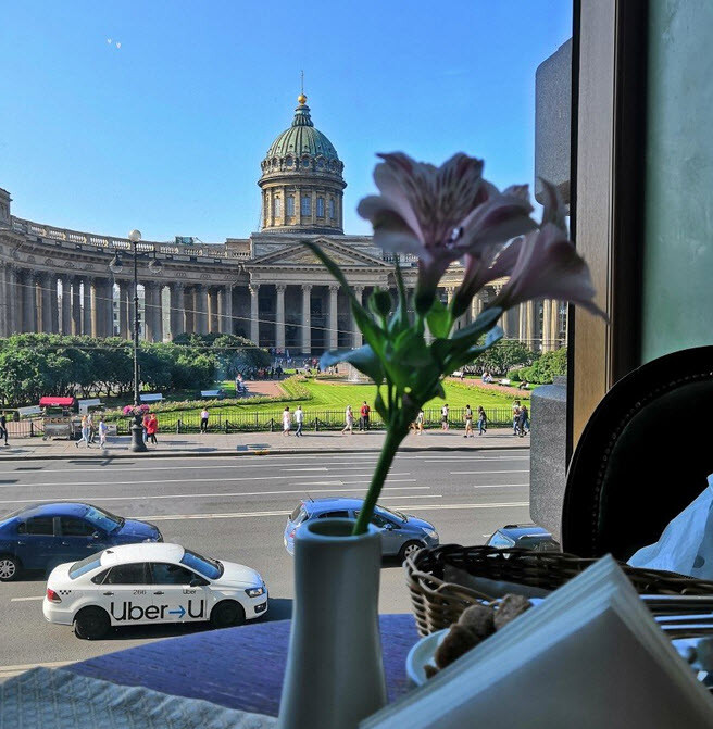 کلیسای کازان از پنجره کتابخانه ساختمان سینگر - سنت پترزبورگ - روسیه
