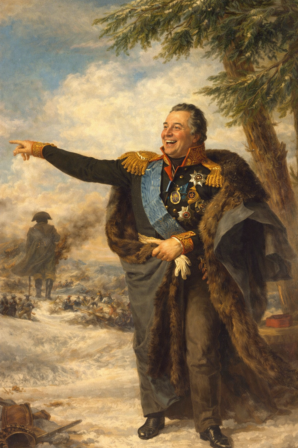 تصویربازسازی شده هوش مصنوعی (میخاییل کوتوزوف خوشحال از پیروزی ) در جنگ با ناپلئون